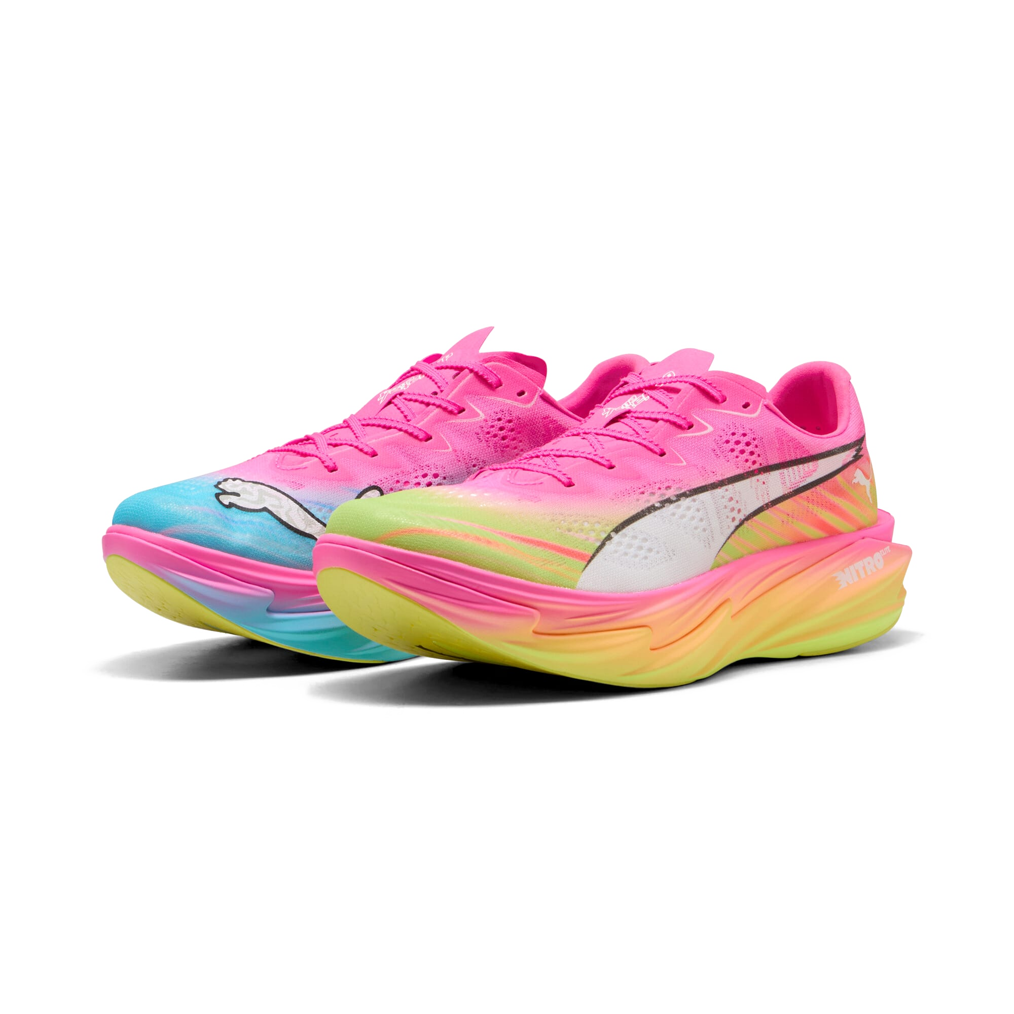 Mens Puma Deviate NITRO Elite 4 Showtime - Poison Pink-Yellow Alert-Bright Aqua